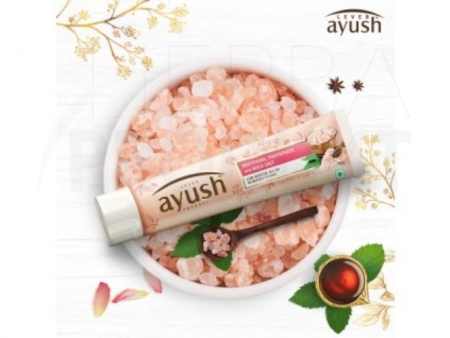 Lever Ayush Whitening Toothpaste obsahuje horskú soľ, ktorá je v ajurvéde známa ako najzdravšia forma soli a po stáročia sa využíva na bielenie zubov. Lever Ayush Whitening Toothpaste obsahuje Arimedas Tailam – unikátnu ajurvédsku zmes 38 bylín, ktorá pomáha robiť zuby silnejšie a zabraňuje zubnému kazu.