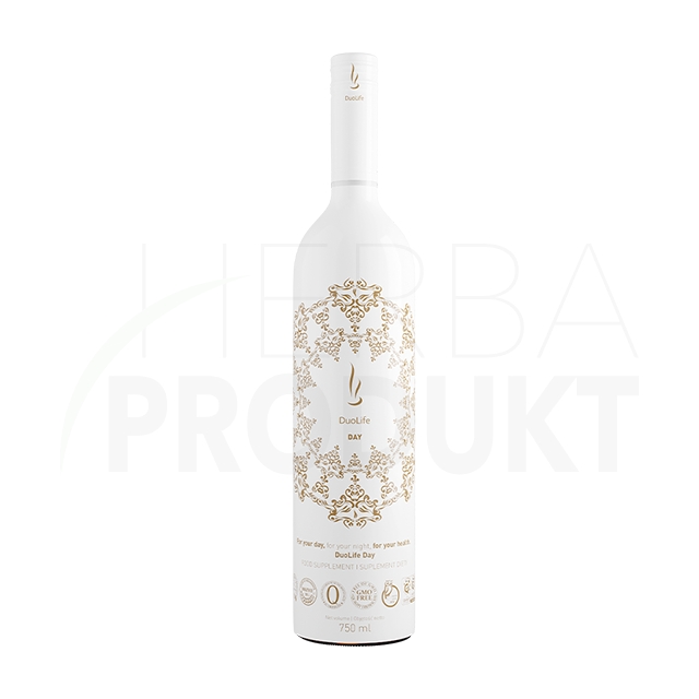 DuoLife Deň: šťava z hrozna, šťava z plodov ruže šípovej, šťava z plodov čiernej bazy, šťava z plodov hlohu, šťava z plodov brusnice, šťavu z granátového jablka, šťava z plodov noni, šťava z plodov rakytníka, šťava z malín, extrakt z plodov ruže šípovej, extrakt z jahody acai, extrakt z lucerny 10:1 (45,8 mg/25 ml), extrakt z koreňa ženšenu (27,49 mg/25 ml, v tom 3,79% ginsenosidy – 1,04 mg/25 ml), extrakt z listov aloesu 200:1 (9,16 mg/25 ml, obsah aloínu < 1 ppm).