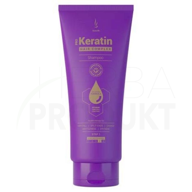 Šampón Pro Keratin Hair Complex je kozmetickým prípravkom pre vlasy, ktoré vypadávajú, sú suché, poškodené, majú rozštiepené koncovky a sú bez lesku. Kombinácia až 6 účinných látok, t. j. extrakt z hrachových klíčkov, extraktu z listov pŕhľavy, hydrolyzovaného keratínu, extraktu z pupočníka ázijského, extraktu z čučoriedok a močoviny nám umožnili vytvoriť nový rozmer starostlivosti o vlasy.