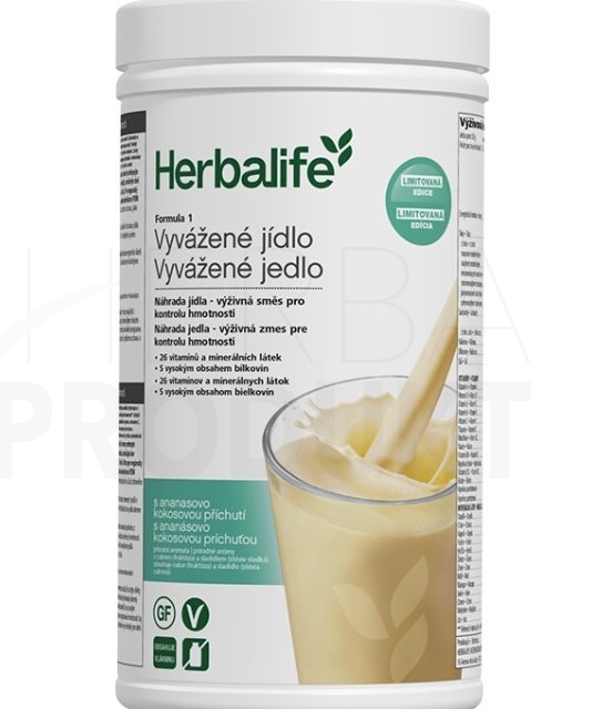 Limitovaná edícia Herbalife Formula 1 s Ananásovou Kokosovou príchuťou je zdravý koktail nahrádzajúci jedlo s vysokým obsahom bielkovín, ktoré podporujú udržanie a rast svalovej hmoty, a je vyvážený vitamínmi a minerálmi plus tukmi.
