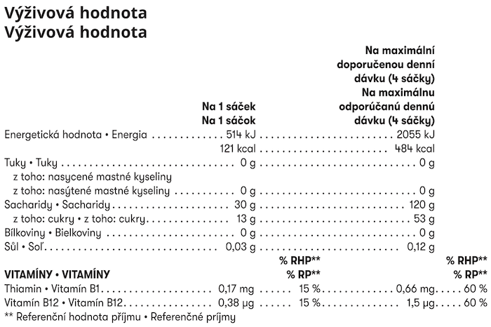 *Obsahuje vitamín B12 a tiamín