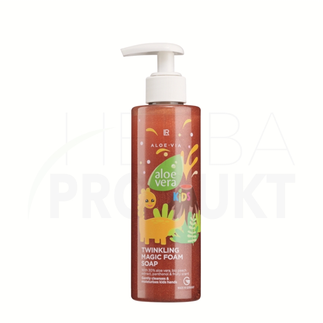 Jemné penové mydlo s Aloe vera gélom a organickým broskyňovým extraktom sa trblieta a leskne, vďaka čomu premení všedné umývanie rúk na sršiaci vulkán zábavy.