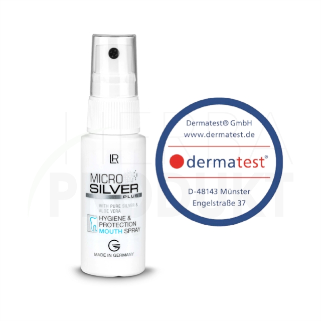 Čistí tiež ústnu dutinu so spoľahlivosťou s 99 % od všetkých zárodkov – vďaka antibakteriálnemu a antivírusovému MicroSilver BGTM. Sprej zabraňuje povlaku, kazom a periodontálnym chorobám, podporuje ústny mikrobióm a osviežuje rýchlo a účinne dych.