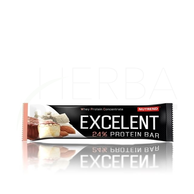 EXCELENT PROTEIN BAR 85 g príchuť - marcipánová s mandľami v pravej mliečnej čokoláde: proteínová zmes (sójový proteínový izolát, srvátkový proteínový koncentrát, sójové vločky), glukózovo-fruktózový sirup, mliečna čokoláda 14% (cukor, kakaové maslo, kakaová hmota, sušené plnotučné mlieko, emulgátory sójový lecitín a E 476, vanilkový extrakt), tekutý invertný cukor, rastlinný tuk (palmojadrový, palmový, bambucký), krém s príchuťou vanilky (cukor, palmový a bambucký olej, sušená syrovátka, sušené odstredené mlieko, emulgátor sójový lecitín, aróma, farbivo E 160c), mandle 3%, kokos (kokos, antioxidant oxid siričitý), ryžový extrudát (ryža, emulgátor E 471), emulgátor repkový lecitín, L-glutamín, aróma, antioxidant zmes prírodných tokoferolov, zahusťovadlo guarová guma, nikotínamid, riboflavín. Môže obsahovať stopy orechov, arašidov a sezamu.
