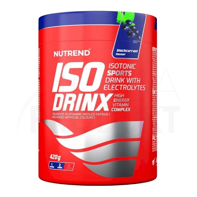 ISODRINX - príchuť čierna ríbezľa: sacharóza, glukóza, maltodextrín, aróma, regulátor kyslosti kyselina citrónová, citronan sodný, stabilizátor karagenan, chlorid sodný, regulátor kyslosti kyselina jablčná, glukonát vápenatý, vitamínový premix (kyselina L-askorbová, DL-α-tokoferylacetát, nikotinamid, D-pantothenát vápenatý, pyridoxin hydrochlorid, riboflavin, thiamin mononitrát, kyselina pteroylmonoglutamová, D-biotin, kyanokobalamin), glukonát draselný, protihrudkujúca látky fosforečnan vápenatý a oxid kremičitý, citronan horečnatý, koncentrát z červenej repy a extrakt spiruliny, protihrudkujúca látka oxid kremičitý. Výrobok môže obsahovať stopy sóje a mliečnej bielkoviny.