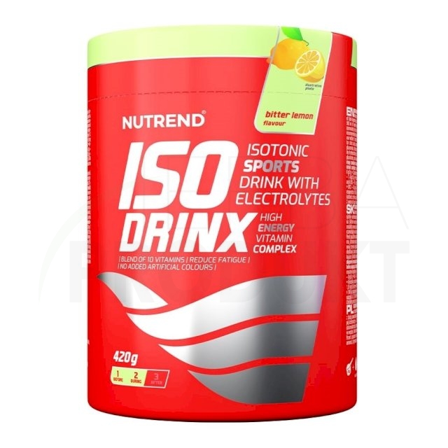 ISODRINX - príchuť bitter lemon: sacharóza, glukóza, maltodextrín, aróma, regulátor kyslosti kyselina citrónová, citronan sodný, stabilizátor karagenan, chlorid sodný, regulátor kyslosti kyselina jablčná, glukonát vápenatý, vitamínový premix (kyselina L-askorbová, DL-α-tokoferylacetát, nikotinamid, D-pantothenát vápenatý, pyridoxin hydrochlorid, riboflavin, thiamin mononitrát, kyselina pteroylmonoglutamová, D-biotin, kyanokobalamin), glukonát draselný, protihrudkujúca látky fosforečnan vápenatý a oxid kremičitý, citronan horečnatý, aróma naringin. Výrobok môže obsahovať stopy sóje a mliečnej bielkoviny.