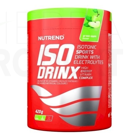 ISODRINX - príchuť zelené jablko: sacharóza, glukóza, maltodextrín, aróma, regulátor kyslosti kyselina citrónová, citronan sodný, stabilizátor karagenan, chlorid sodný, regulátor kyslosti kyselina jablčná, glukonát vápenatý, vitamínový premix (kyselina L-askorbová, DL-α-tokoferylacetát, nikotinamid, D-pantothenát vápenatý, pyridoxin hydrochlorid, riboflavin, thiamin mononitrát, kyselina pteroylmonoglutamová, D-biotin, kyanokobalamin), glukonát draselný, protihrudkujúca látky fosforečnan vápenatý a oxid kremičitý, citronan horečnatý. Výrobok môže obsahovať stopy sóje a mliečnej bielkoviny.